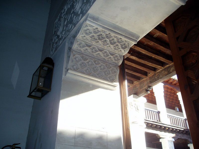 Ya en su fachada, nos encontramos con SS heráldicas que los Reyes Católicos distinguieron a su fiel servidor -Don Gutiérre de Cárdenas- artífice de la unión de Isabel y Fernando, no en vano sería quien redactara las cláusulas del posterior matrimonio y acompañara a la entonces princesa Isabel a su encuentro con Fernando, apuesto mozo vestido de mulas.